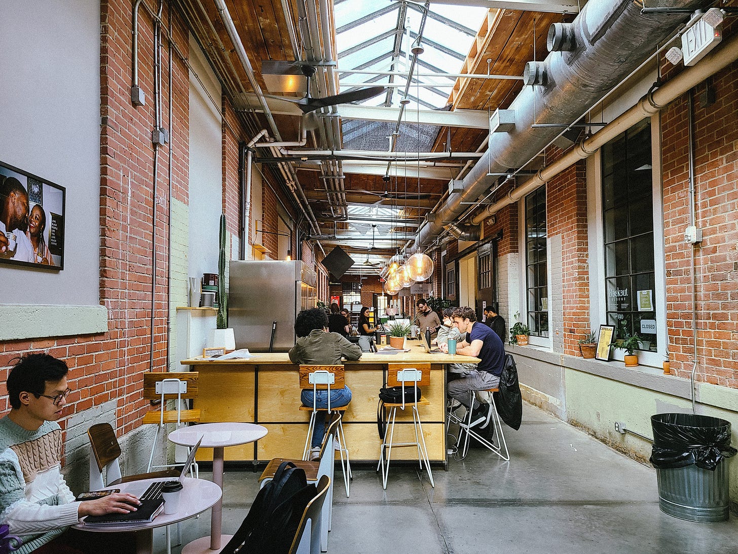 vibes // perfect place to catch up with friends or get some work done; very industrial look and feel with lots of metal, piping, furniture consists of wood boards attached at various angles, etc.