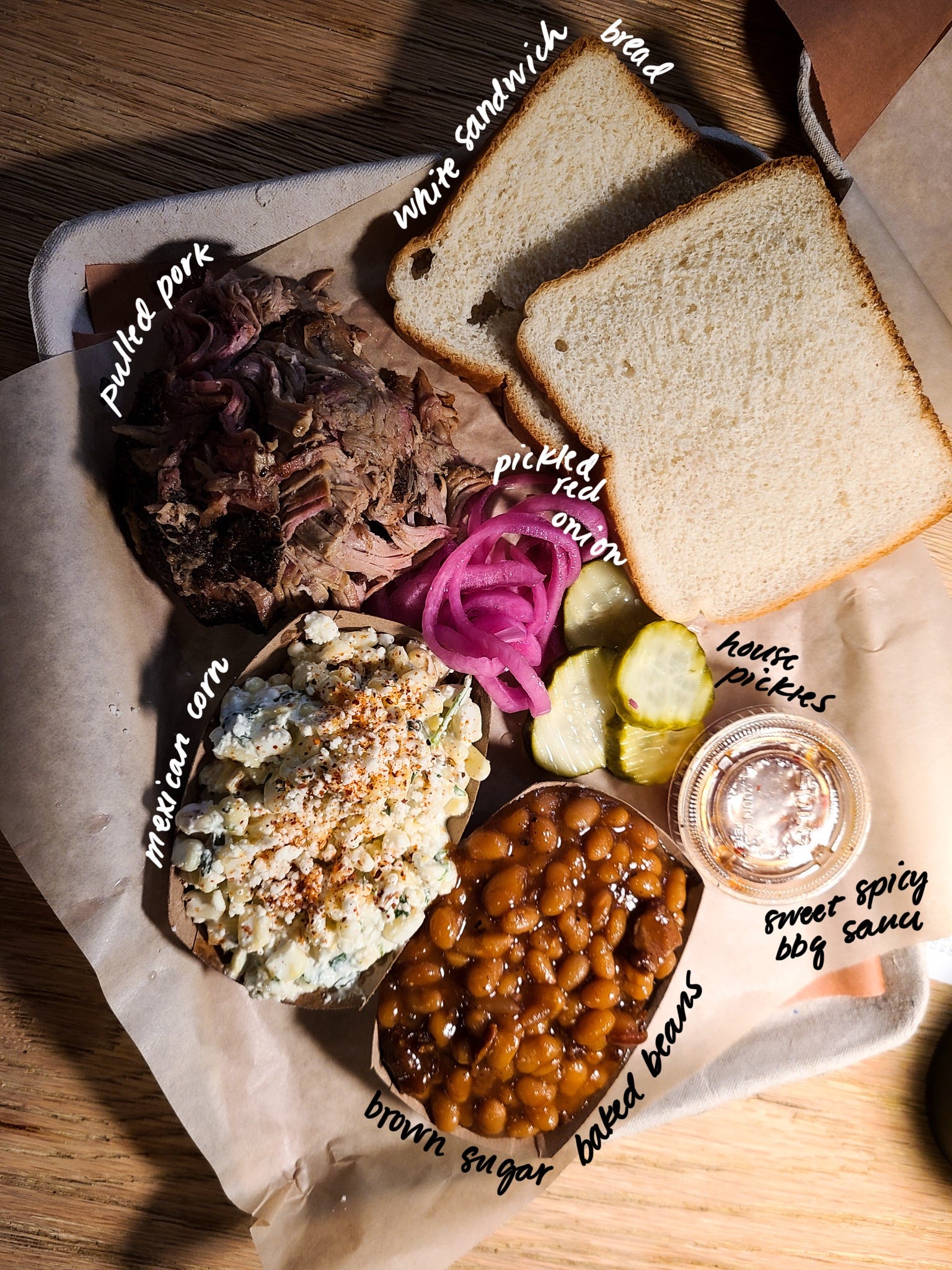 This BBQ plate included pulled pork, white sandwich bread, Mexican corn, brown sugar baked beans, pickled red onion, house pickles, and sweet spicy bbq sauce. I love Mexican corn and this side definitely scratched the itch! It wasn’t too creamy for me, and contained a decent amount of seasoning. I’m normally not a baked beans gal, but this version by Jon G’s was genuinely delicious (I was apprehensive about the sugar, but it wasn’t sickeningly sweet and was actually enjoyable for me). My favorite part of the plate was the ability to “build your own” barbecue tartine with the white sandwich bread, pulled pork, and fixin’s! You can taste the quality in each topping element, so even though it’s all on white bread it tastes phenomenal. (rating 10/10)