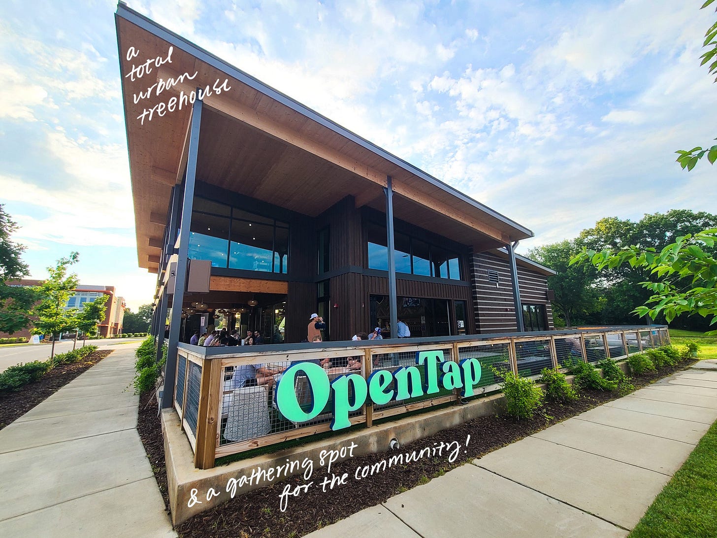If I could summarize OpenTap’s vibe in a headline it would read like “a log cabin refuge in the middle of the woods gets a modern manicure and makeover.” Which may seem unexpected to find in the middle of Charlotte’s Quail Hollow area (very far from the woods), but the unexpectedness of it all actually lends itself a refreshing quality that will drop your jaw!