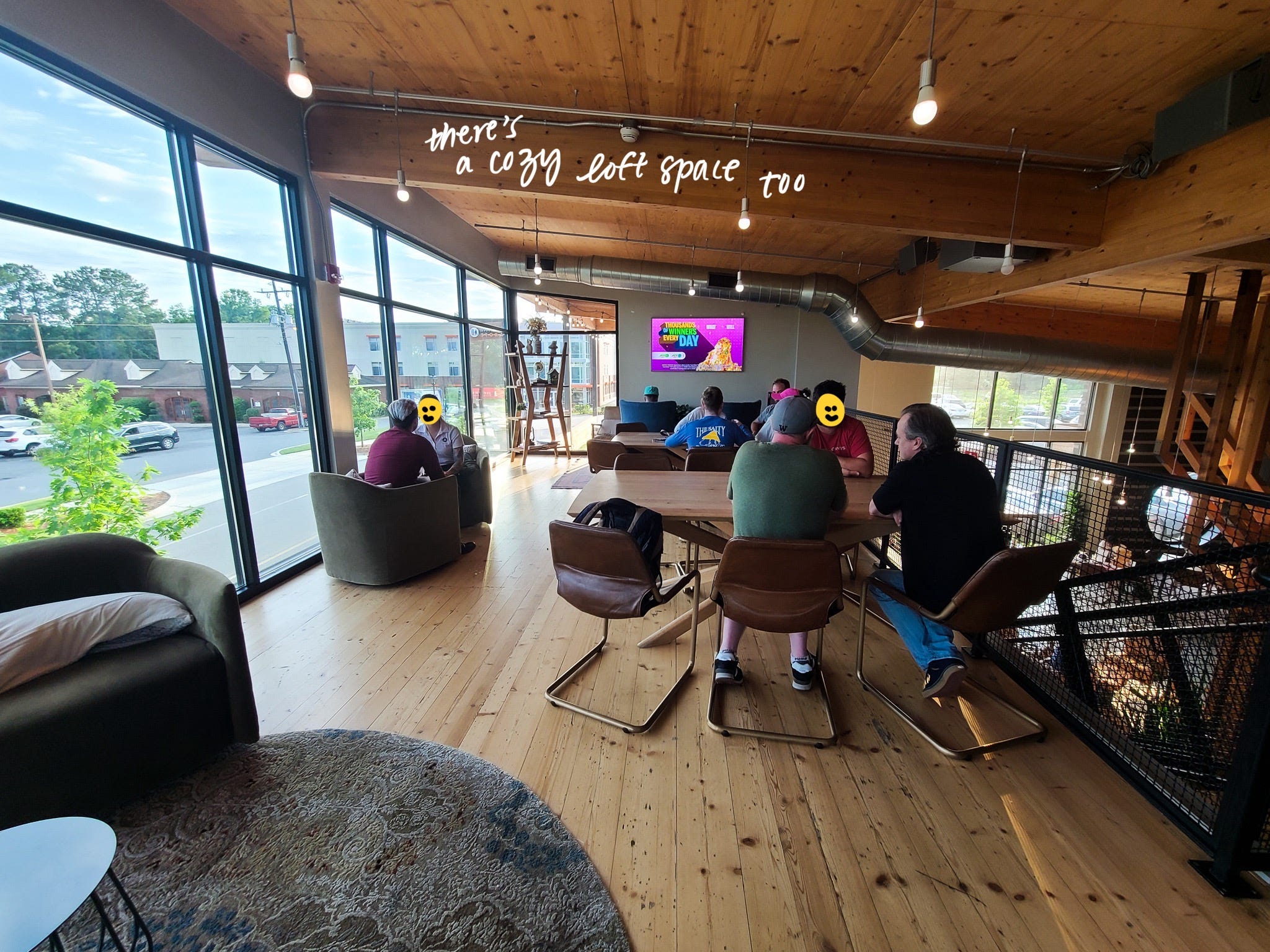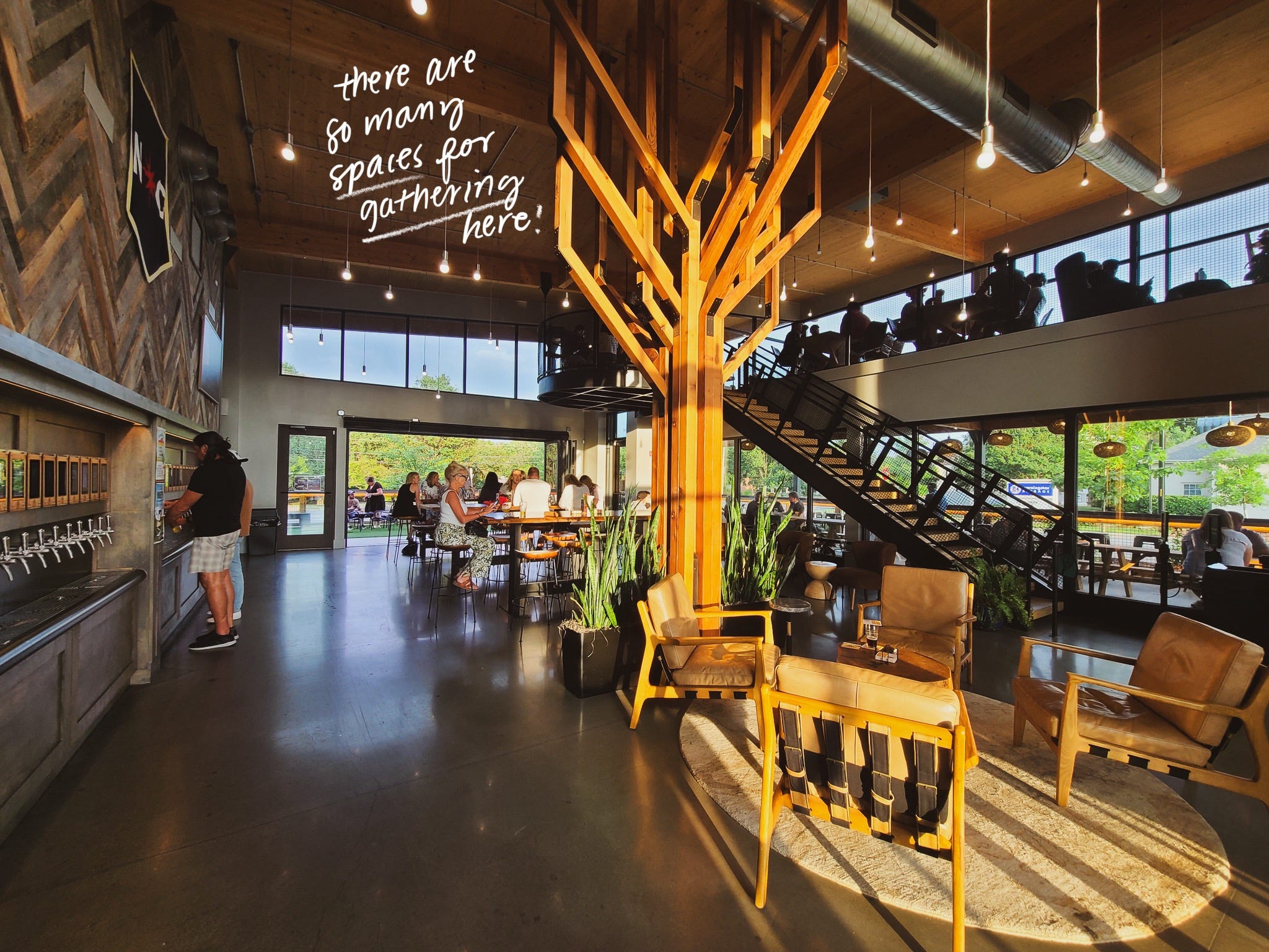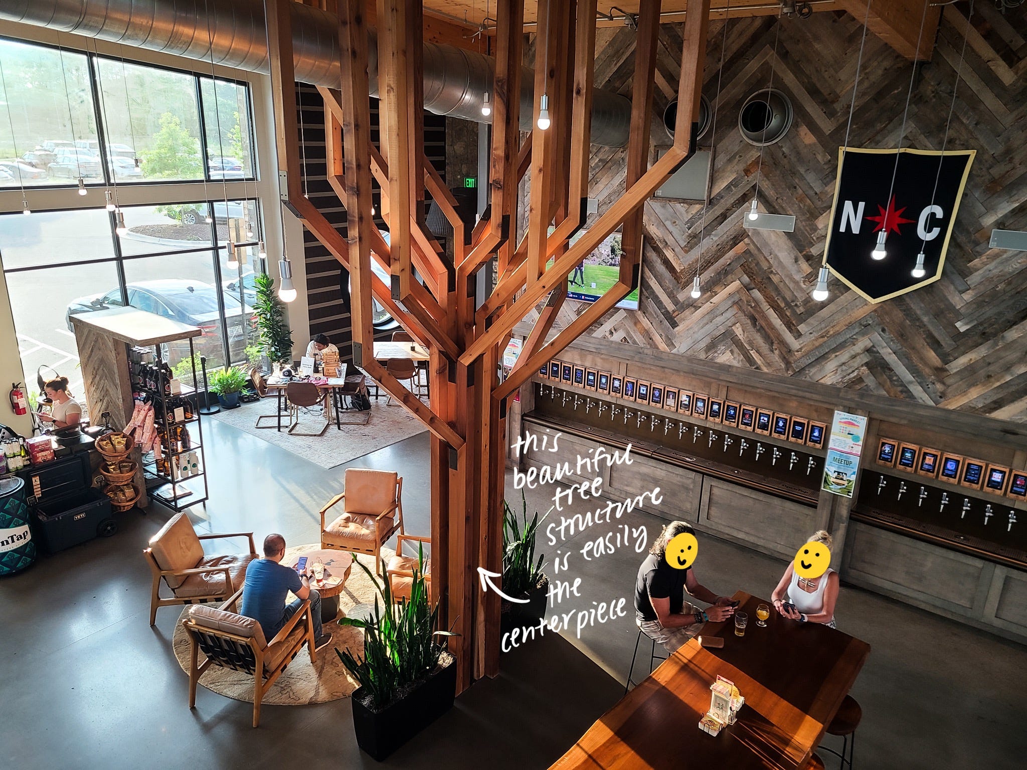 And as if they need more reasons to be successful, OpenTap is one of the first tap-and-pour locations in the South Park/Quail Hollow area of its kind, making it a prime destination for suburban Charlotteans who want access to 64+ beers on tap without dealing with parking headaches in South End! Some of my personal loves—the large circle window in the front, the beautiful wooden tree sculpture in the center, the upstairs nook that feels so classy, the kid-friendly corner in the back that also doubles as a private gathering space…okay, okay, so maybe I like everything?! (but can you blame me!)
