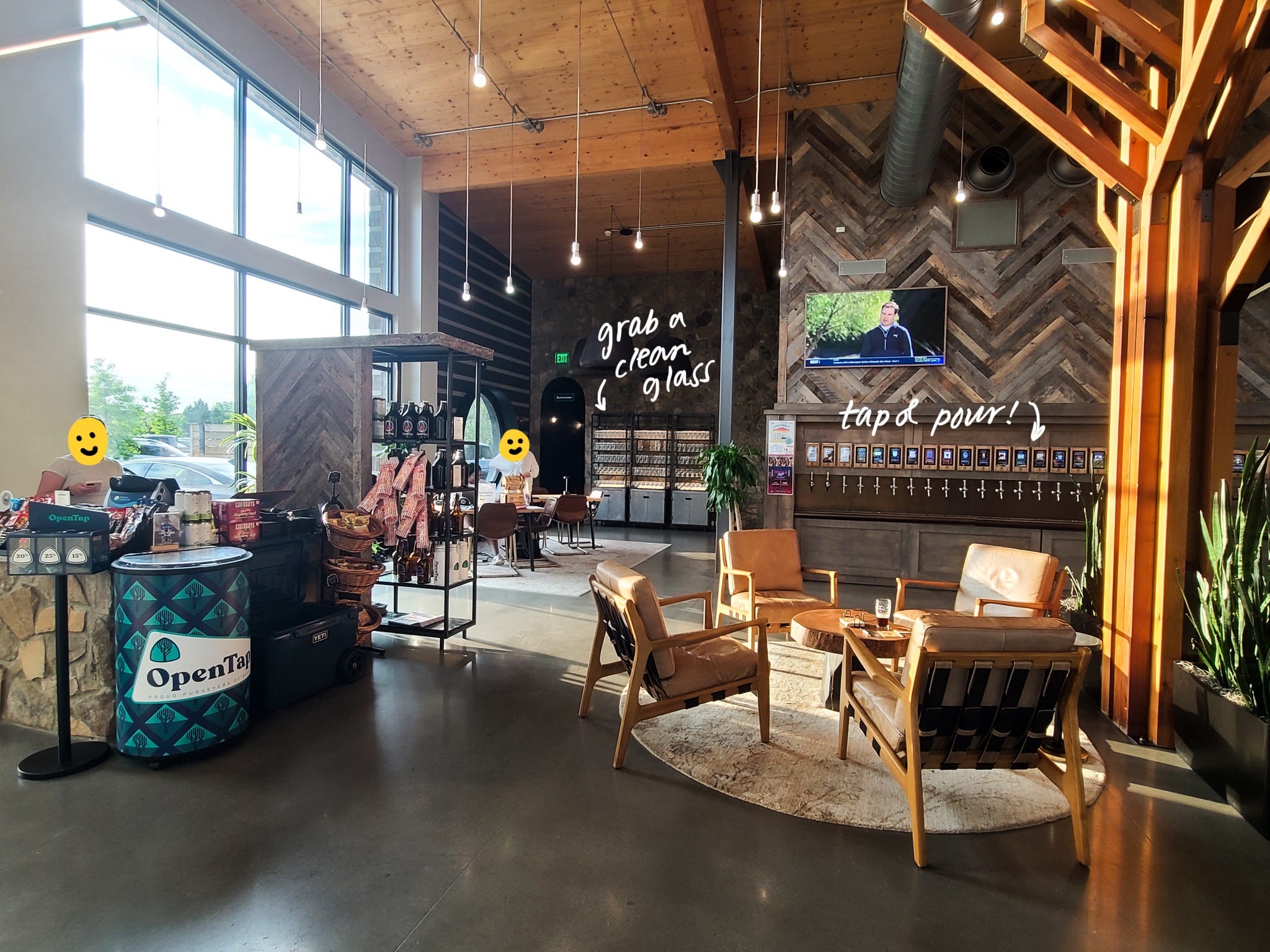 Founders (and husband-and-wife duo) Scott and Brooke Thorne wanted to create a third space that was family-friendly while embracing their love for the mountains, and the community has responded so positively. OpenTap has received non-stop smashing success since their opening day in March 2023. People come to spend time with their neighbors and share an adult beverage, and their kids can safely play in an enclosed outdoors space all the while.
