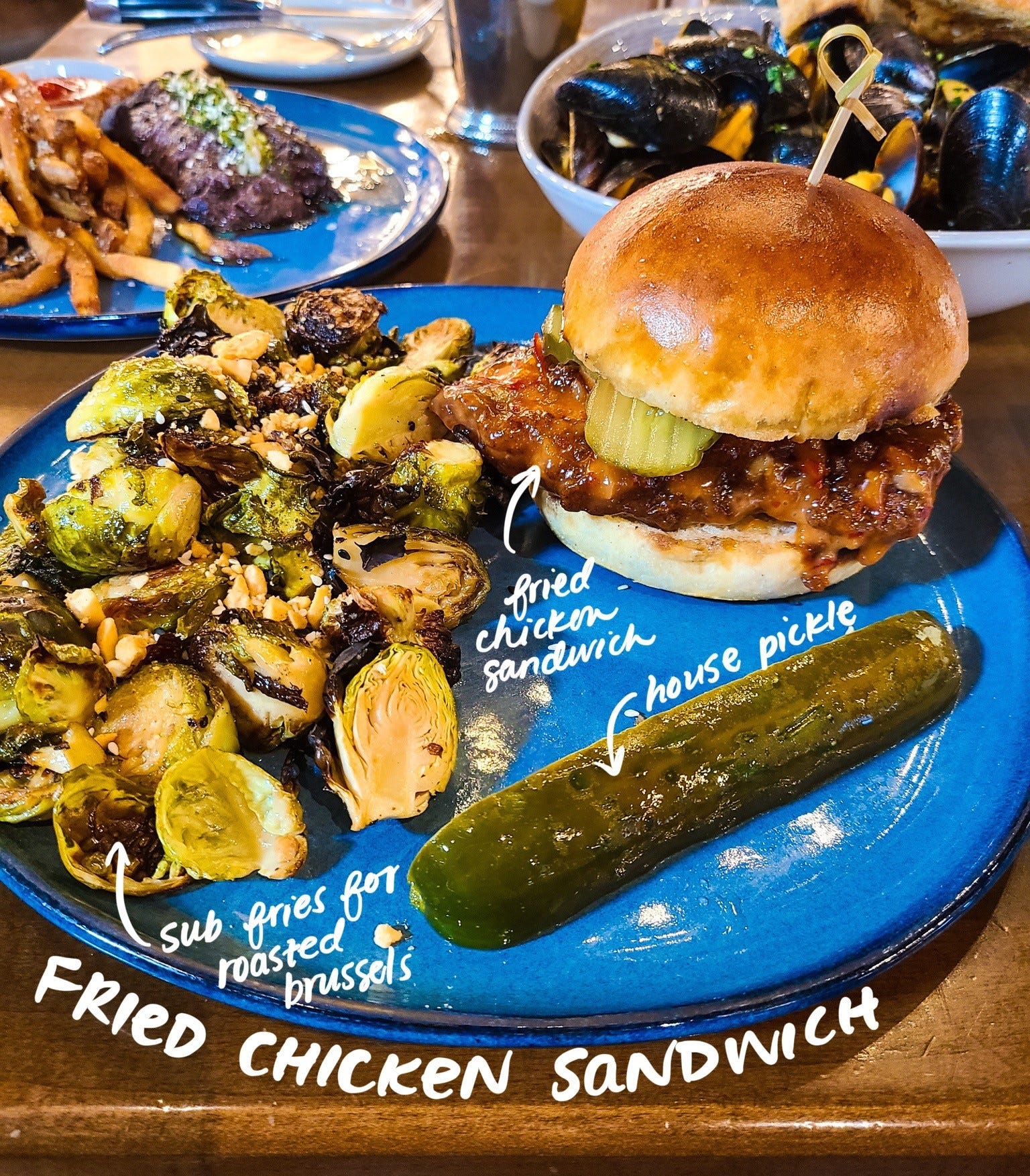 👉 Roasted Brussels: these sported an almost Asian profile with the chopped peanuts, sweet glaze, and sesame seeds. I prefer my brussels soft/melt-in-mouth on the inside and crispy-charred on the outside, so these were a bit disappointing with the inside being pretty raw/tough. On the bright side, they do give you a decent portion of it! (rating: 4/10)