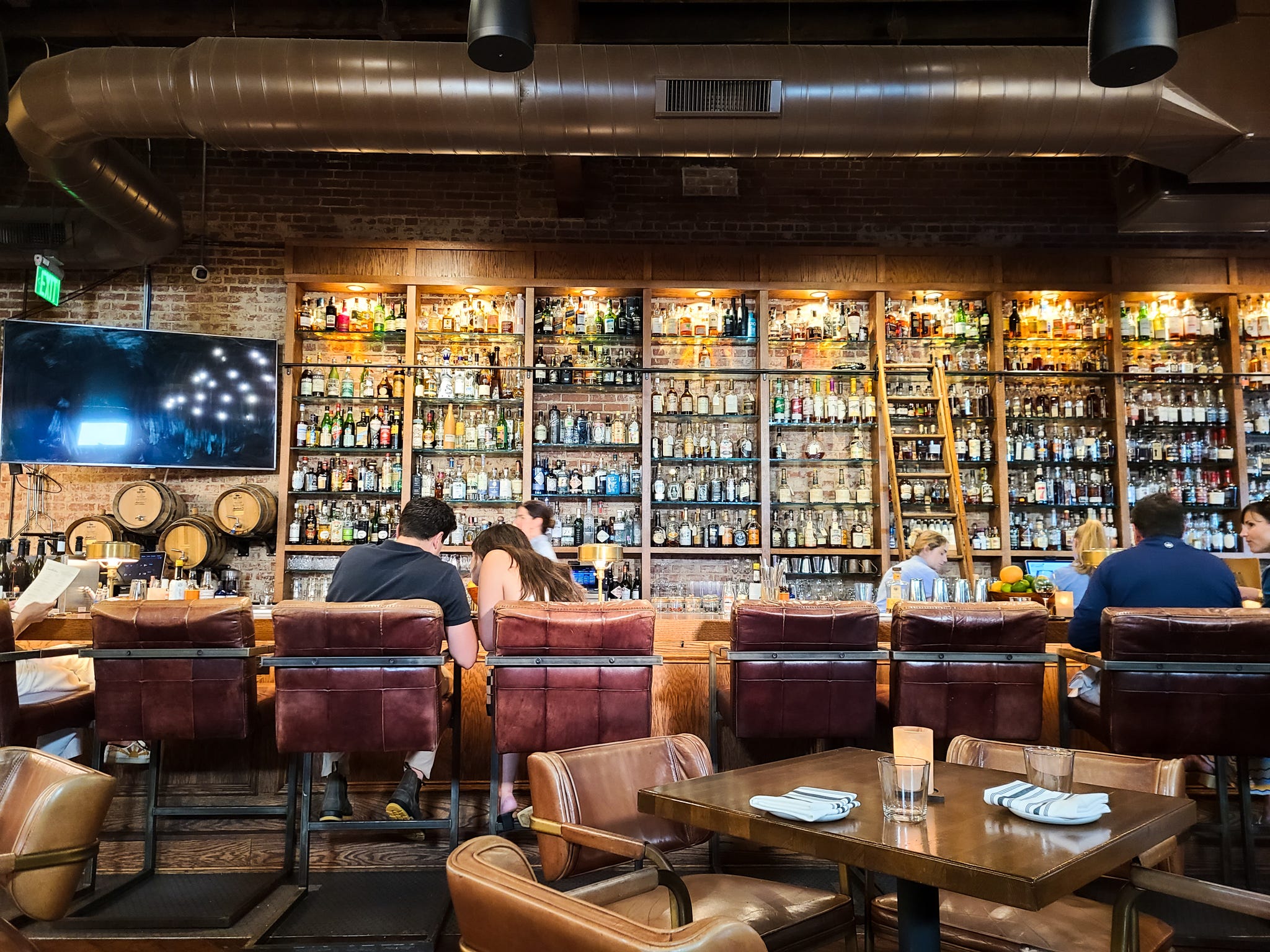 So you walk in, and you’re met with a scene that contends with one of the hippest men’s bars that could’ve existed back in the day. From the distressed brick walls and floor-to-ceiling back bar loaded with spirits from around the world, to the leather lounge chairs and taxidermy flying swans mounted on one end of the dining establishment, you can’t tell me it doesn’t feel like a “fancy cellar where you’ll find a lot of gentlemen gathered talking business, playing poker, smoking cigars, sipping whiskey on the rocks.” It may just be missing a tinge of sepia to really teleport us.